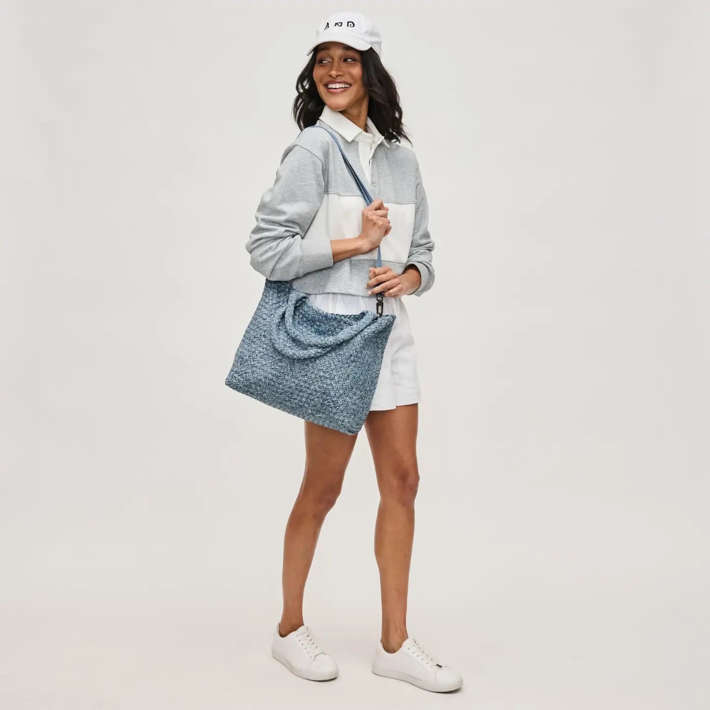 Ribbed Knit Beanie w/ Fur Pom | Blue