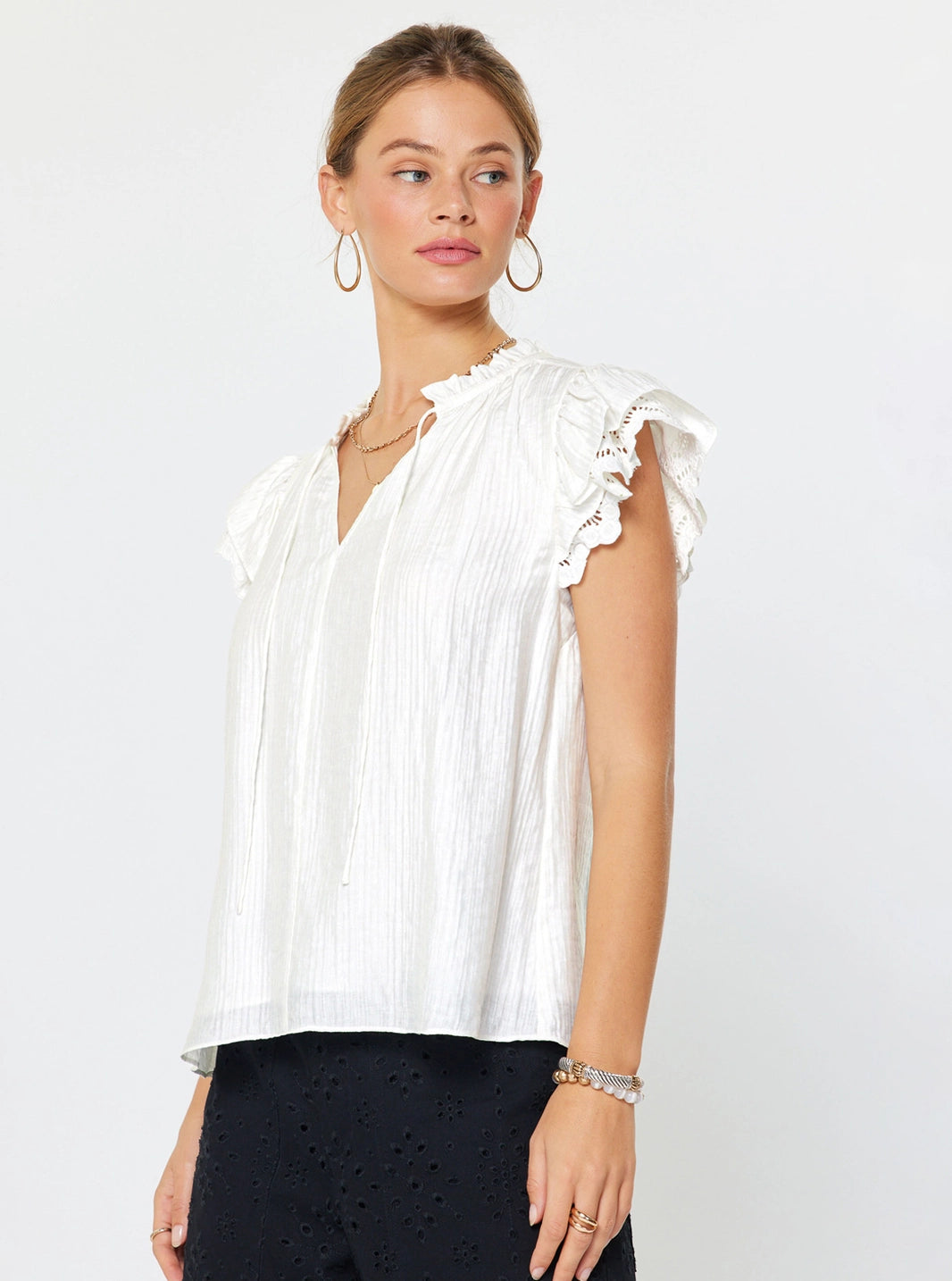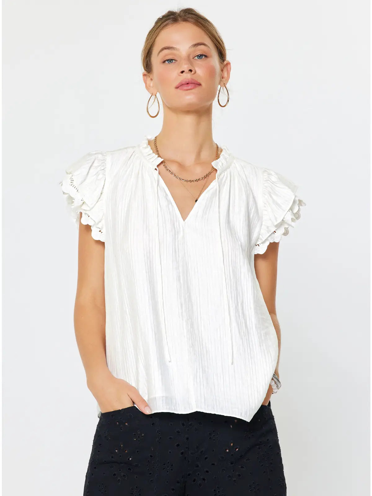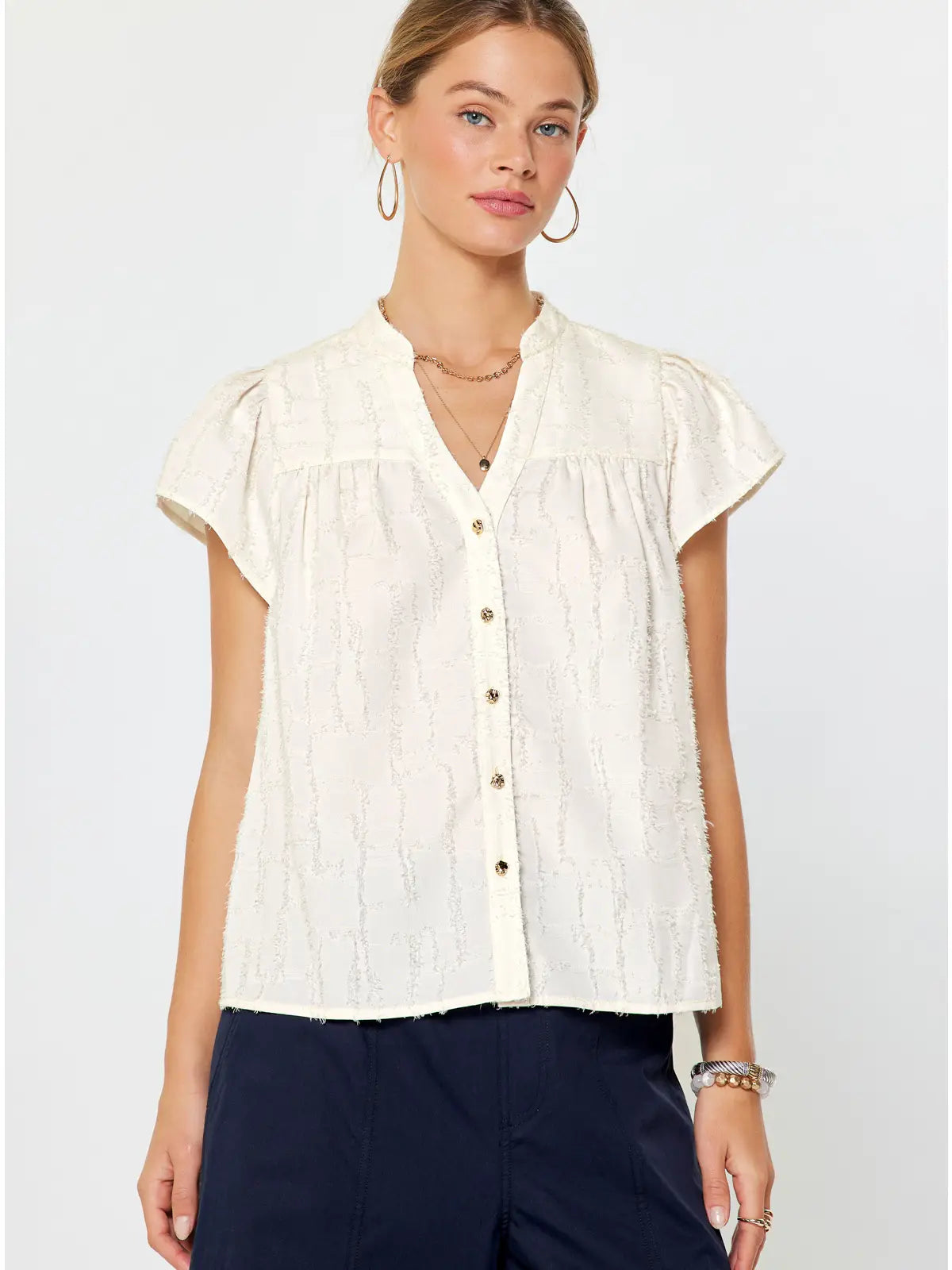 Textured Button Down Blouse | White