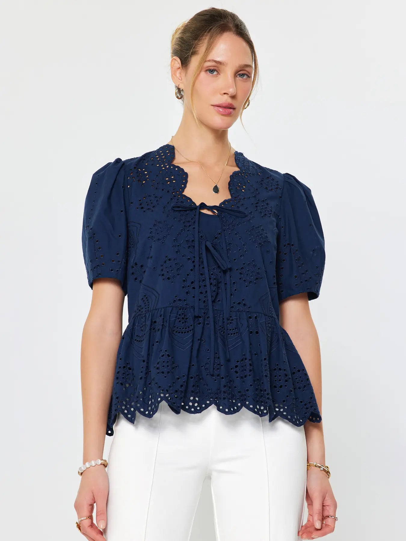 Ellie Embroidered Cotton Top | White