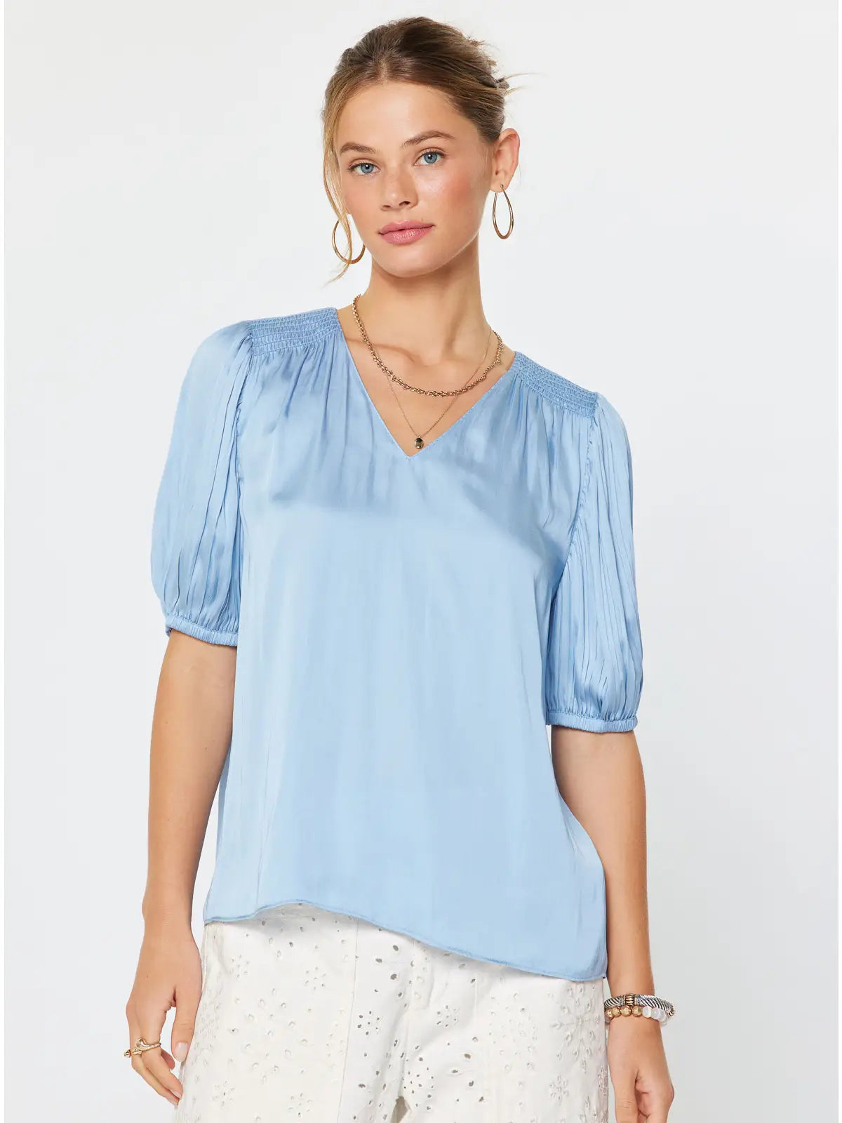 Margot Pleated Sleeve Blouse | White
