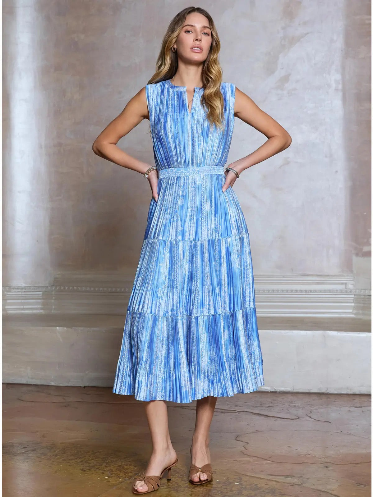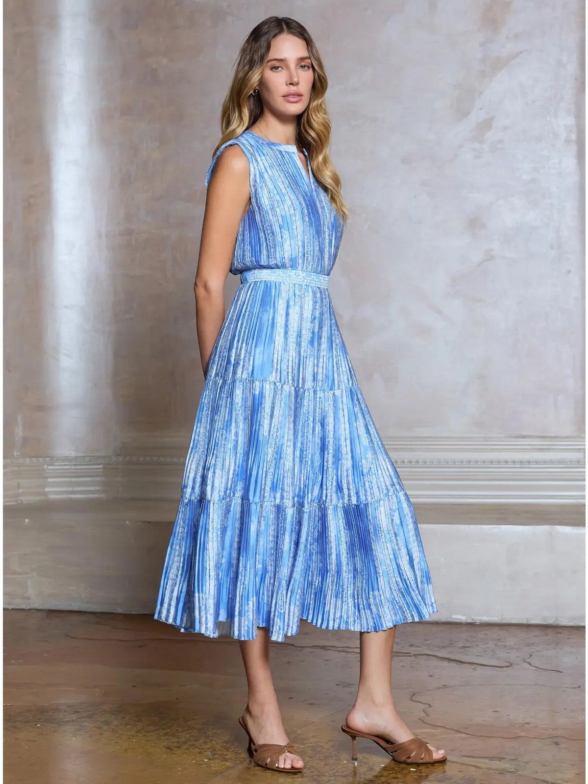 Edie Printed Pleated Dress | Blue Floral