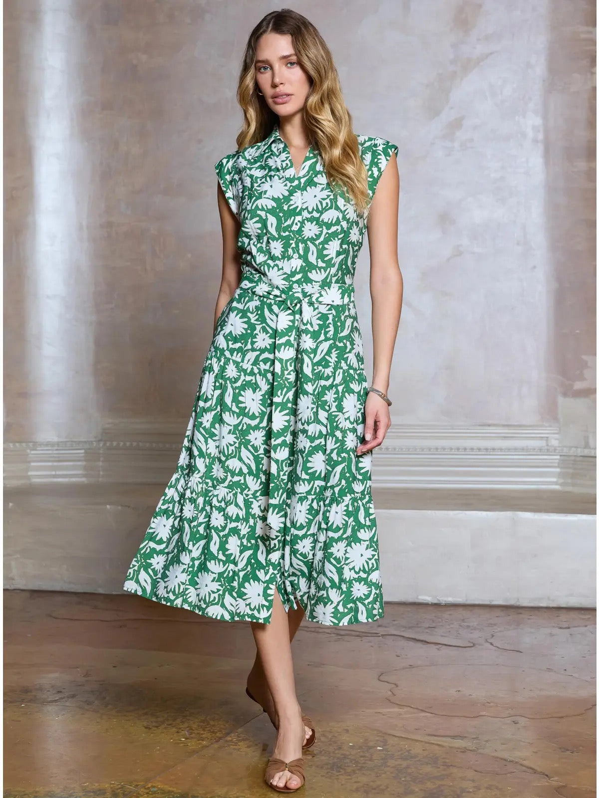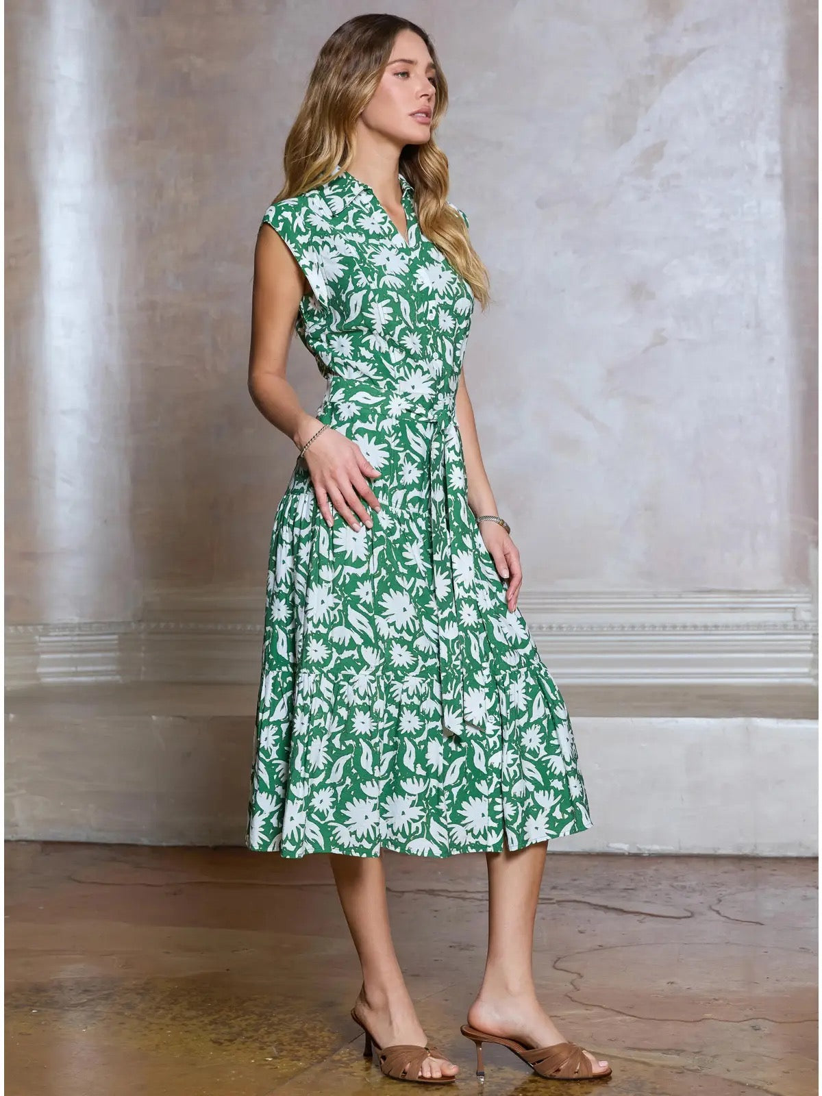 Libby Button Down Midi Dress | Green