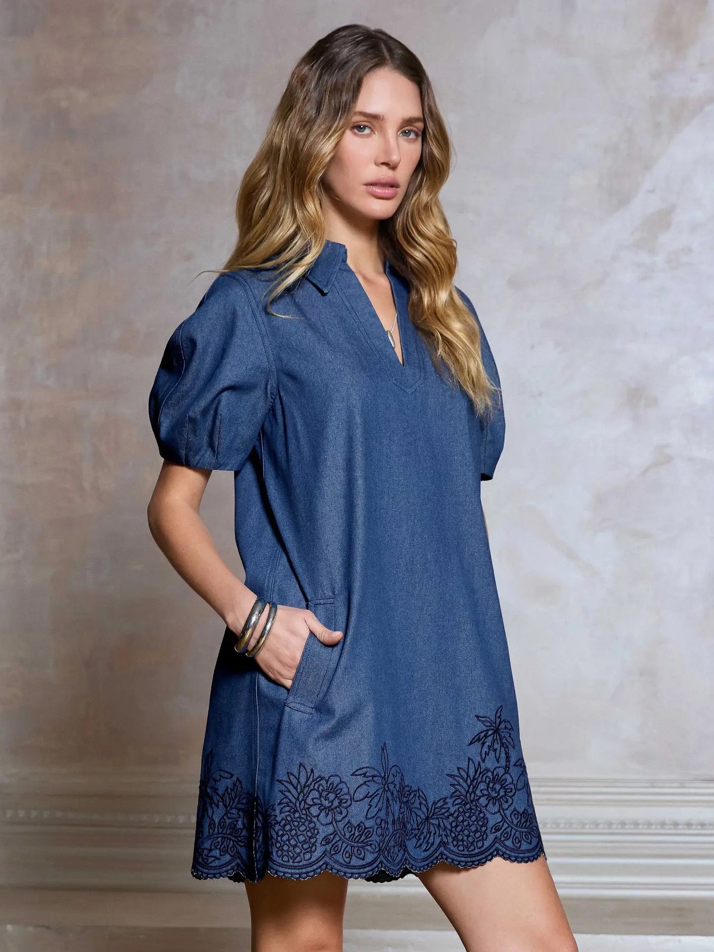 Chandler Embroidered Dress | Denim