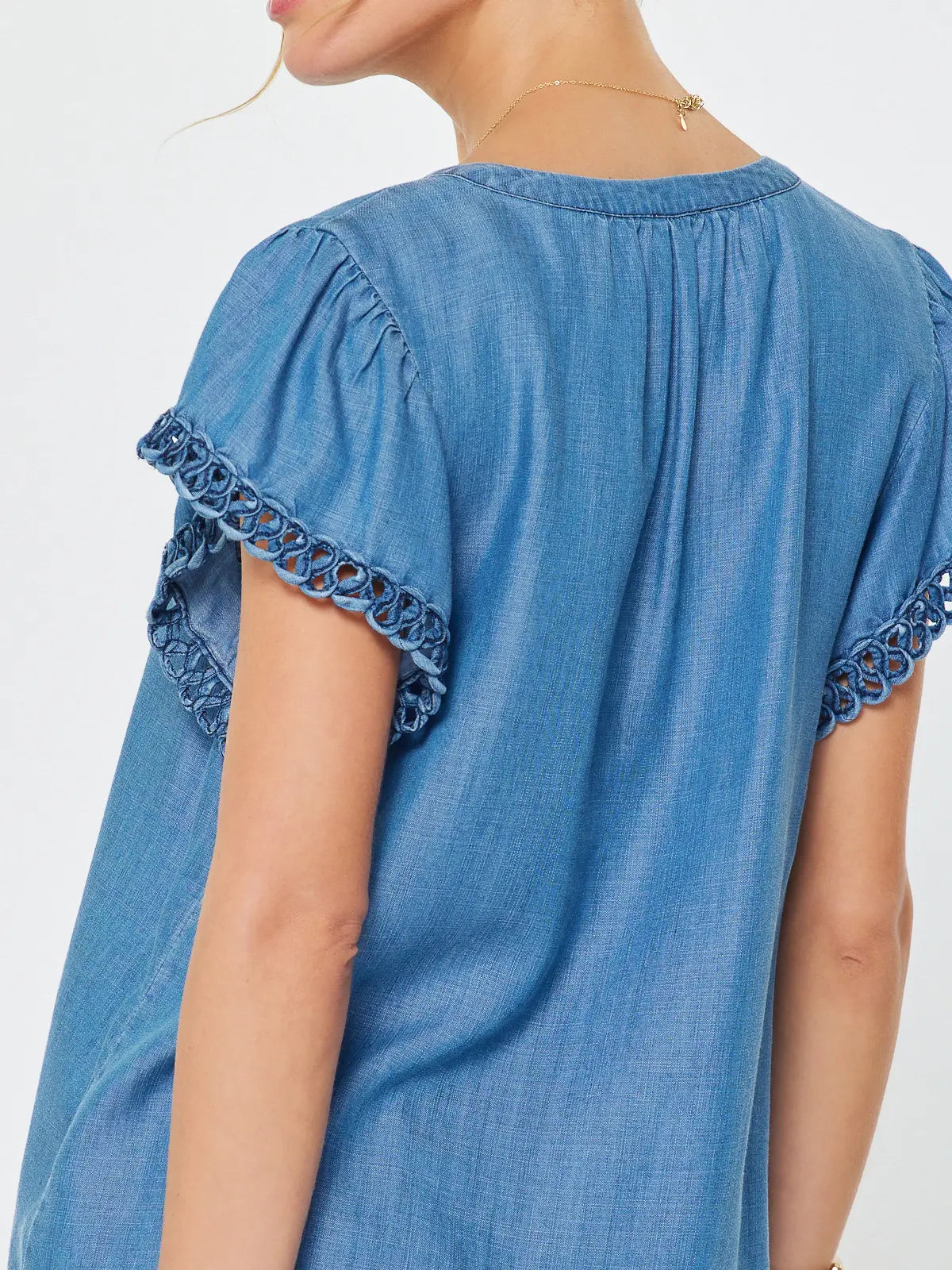 Kate Ruffled Collared Blouse | Chambray