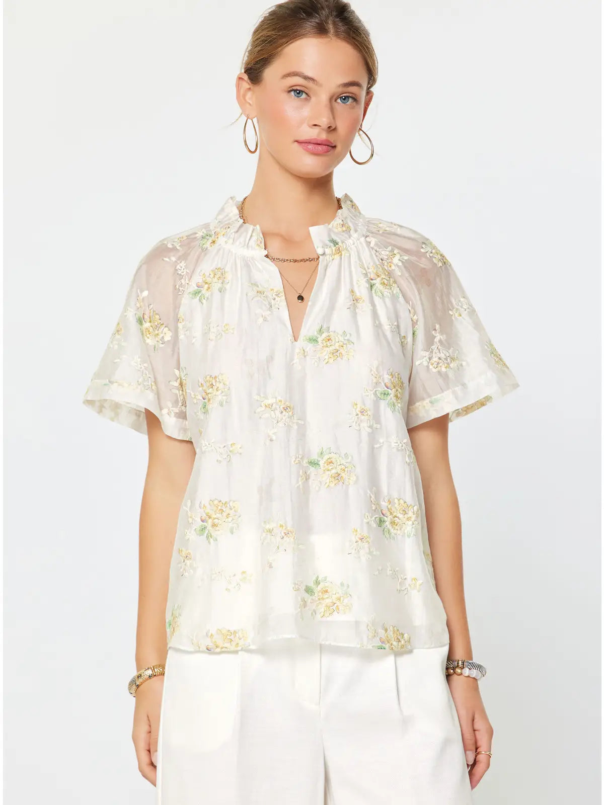 Floral Embroidered Blouse | Ivory