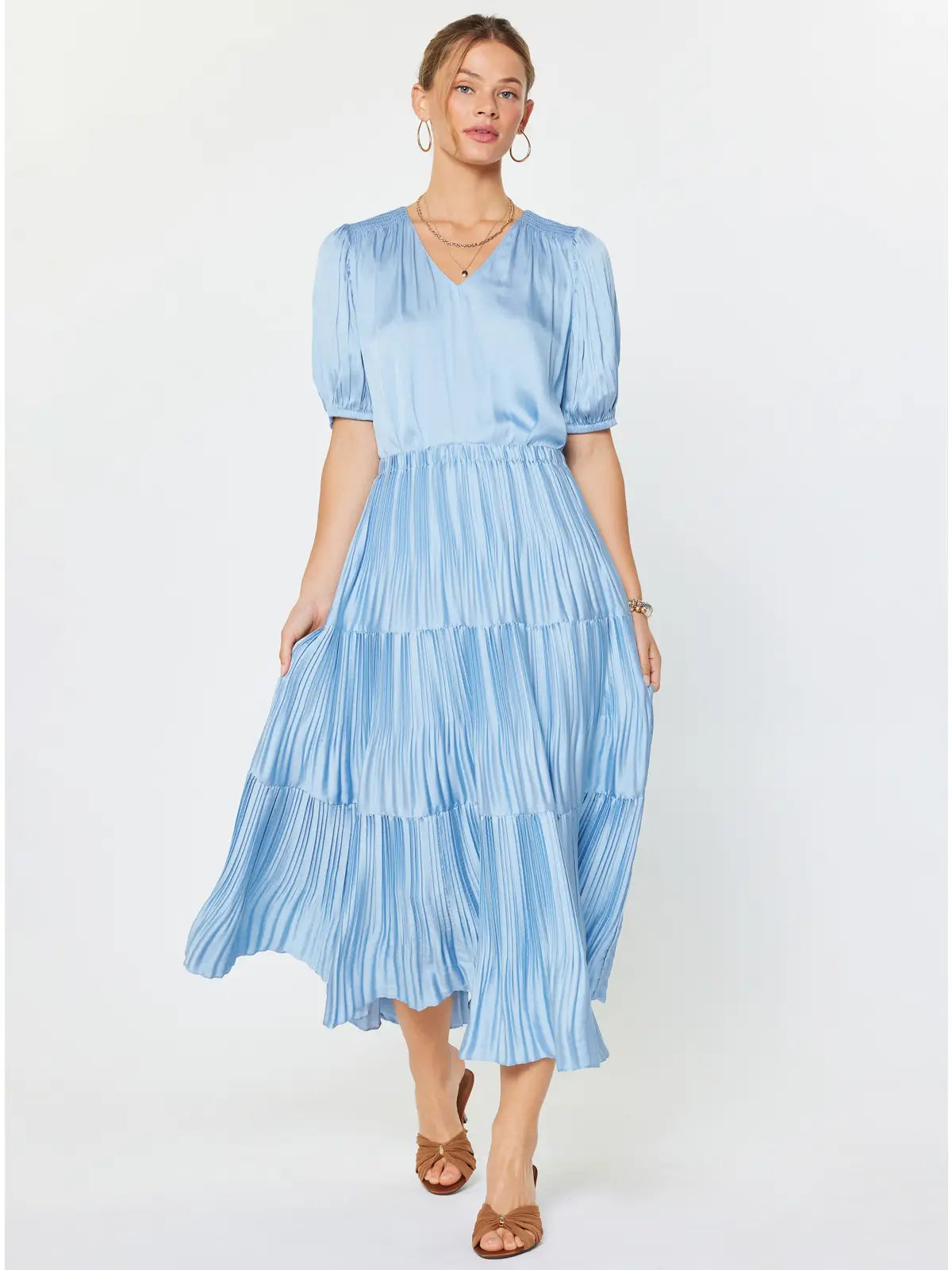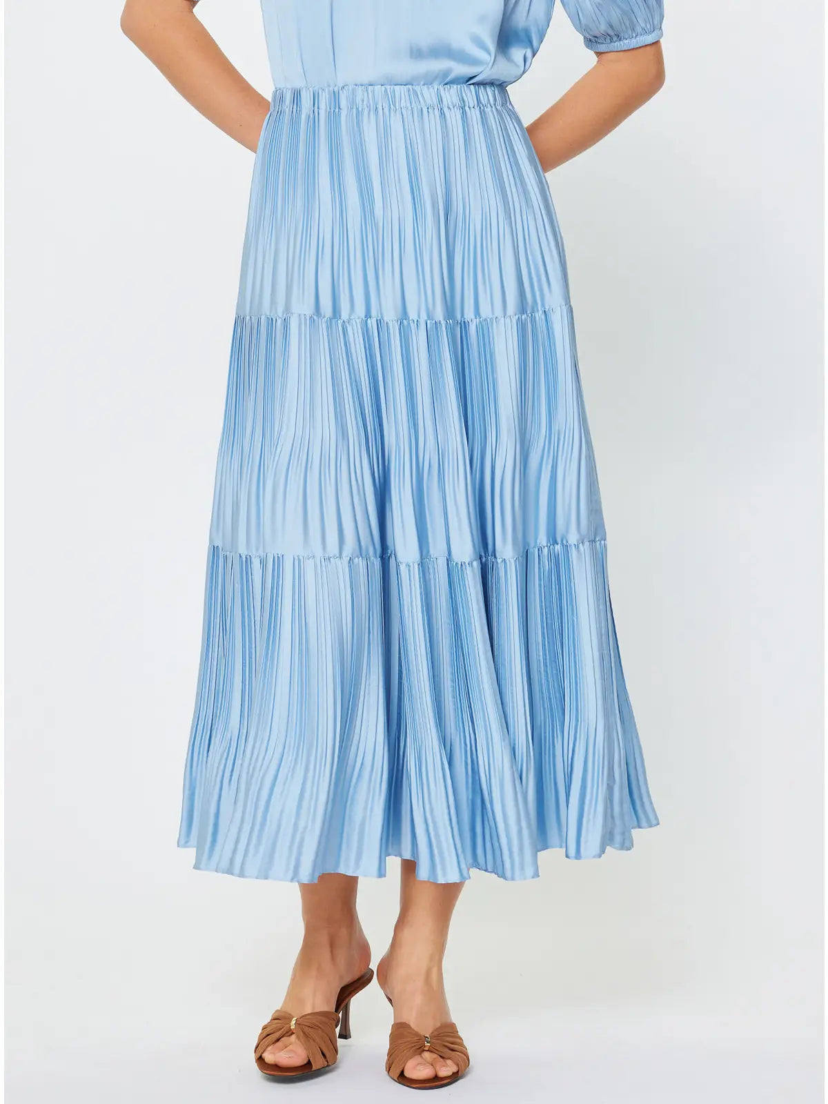 Nora Pleated Tiered Skirt | Light Blue