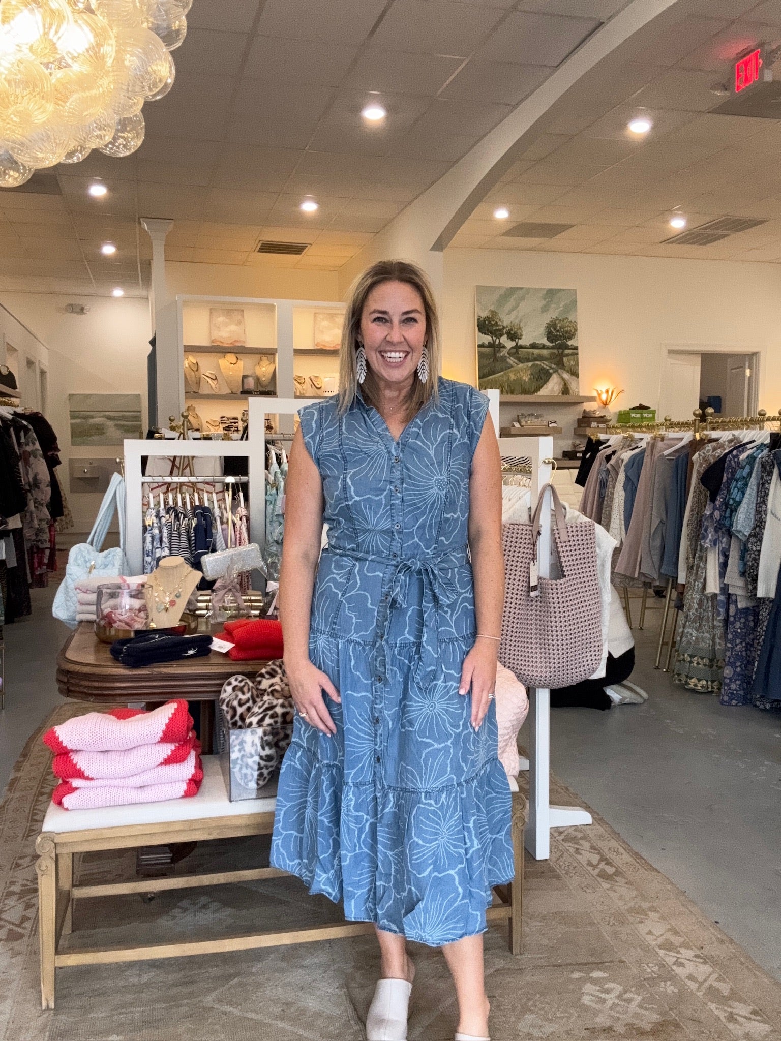 Floral Tiered Button Down Midi Dress | Denim