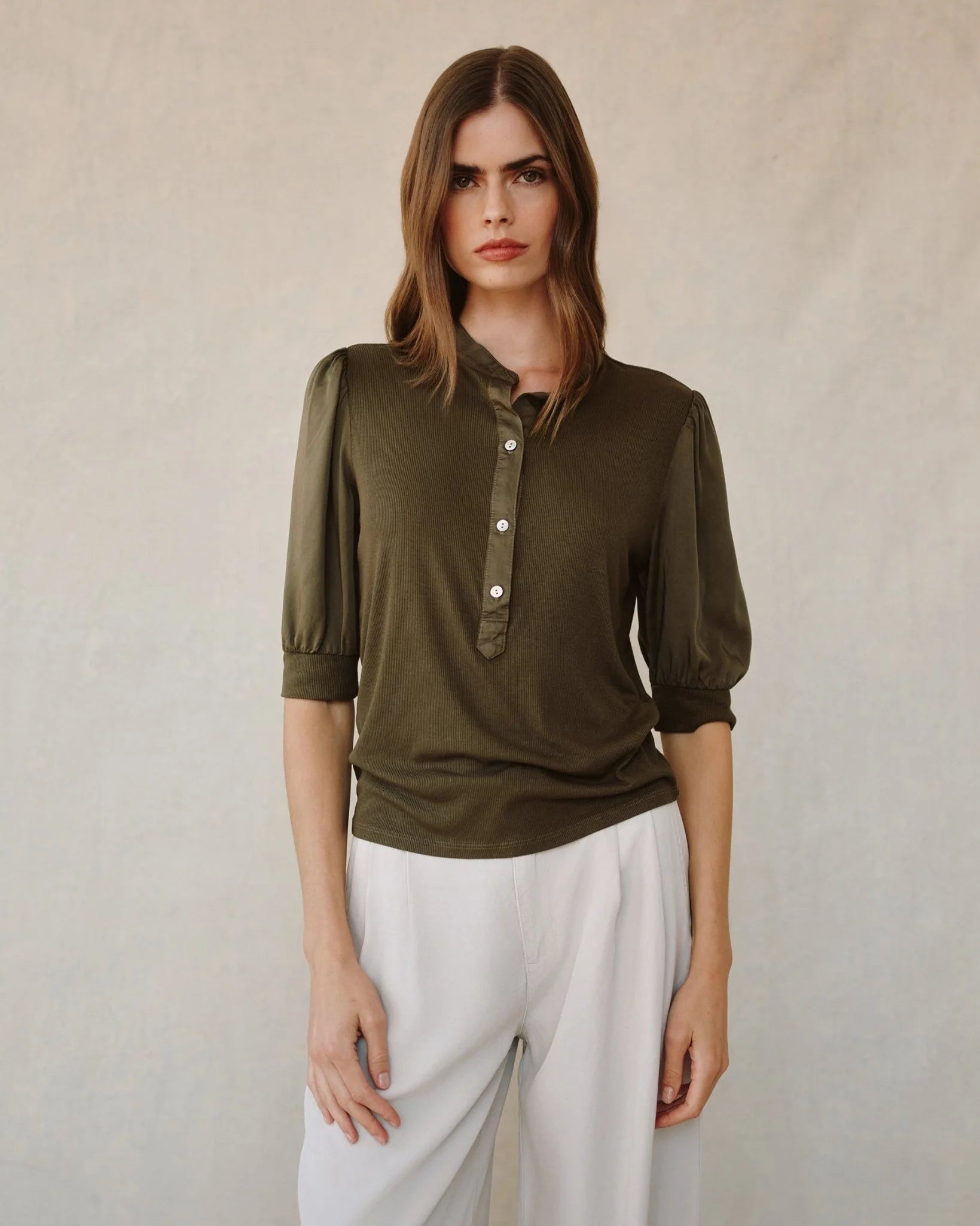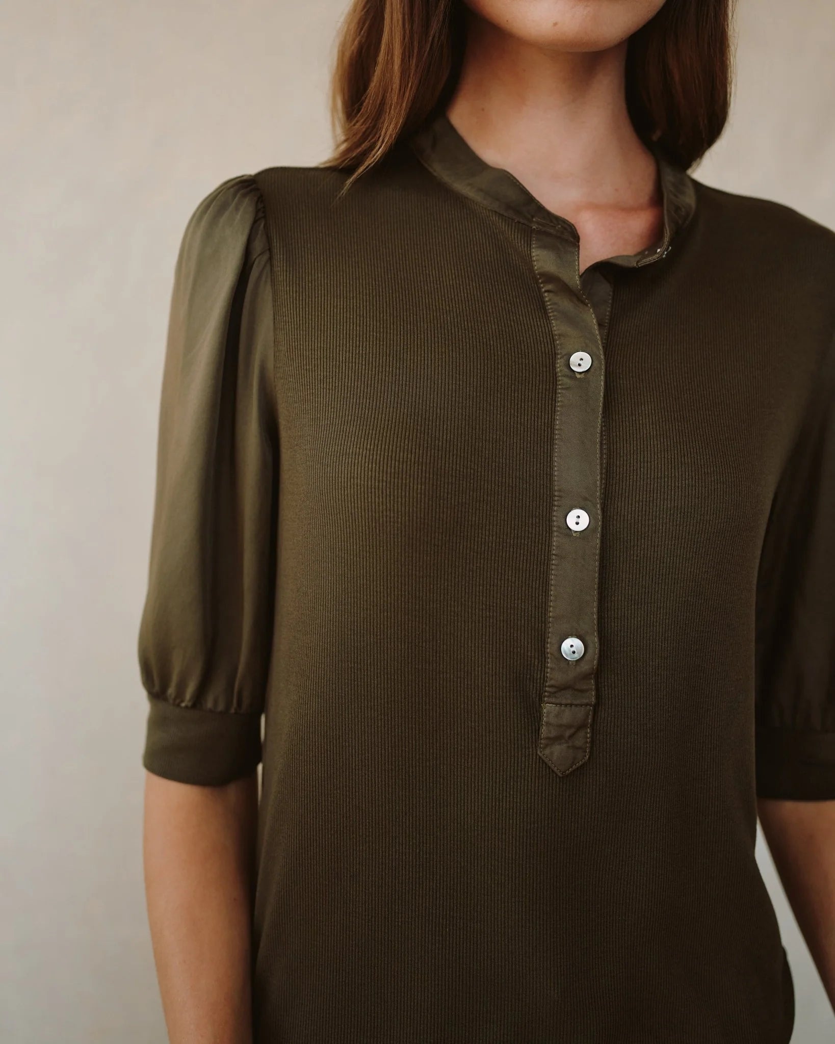 Short Sleeve Placket Mixed Shirt | Ivy Green