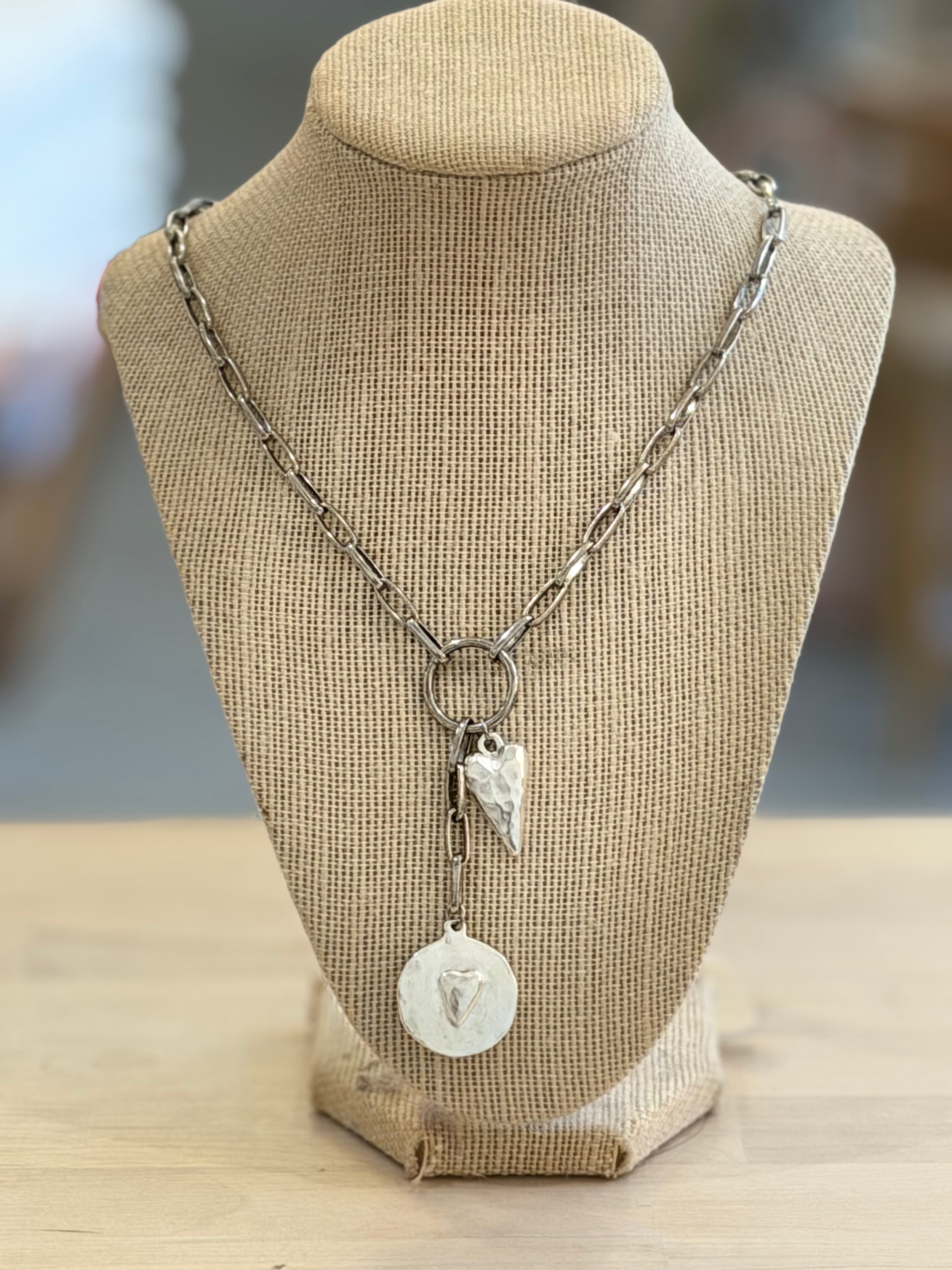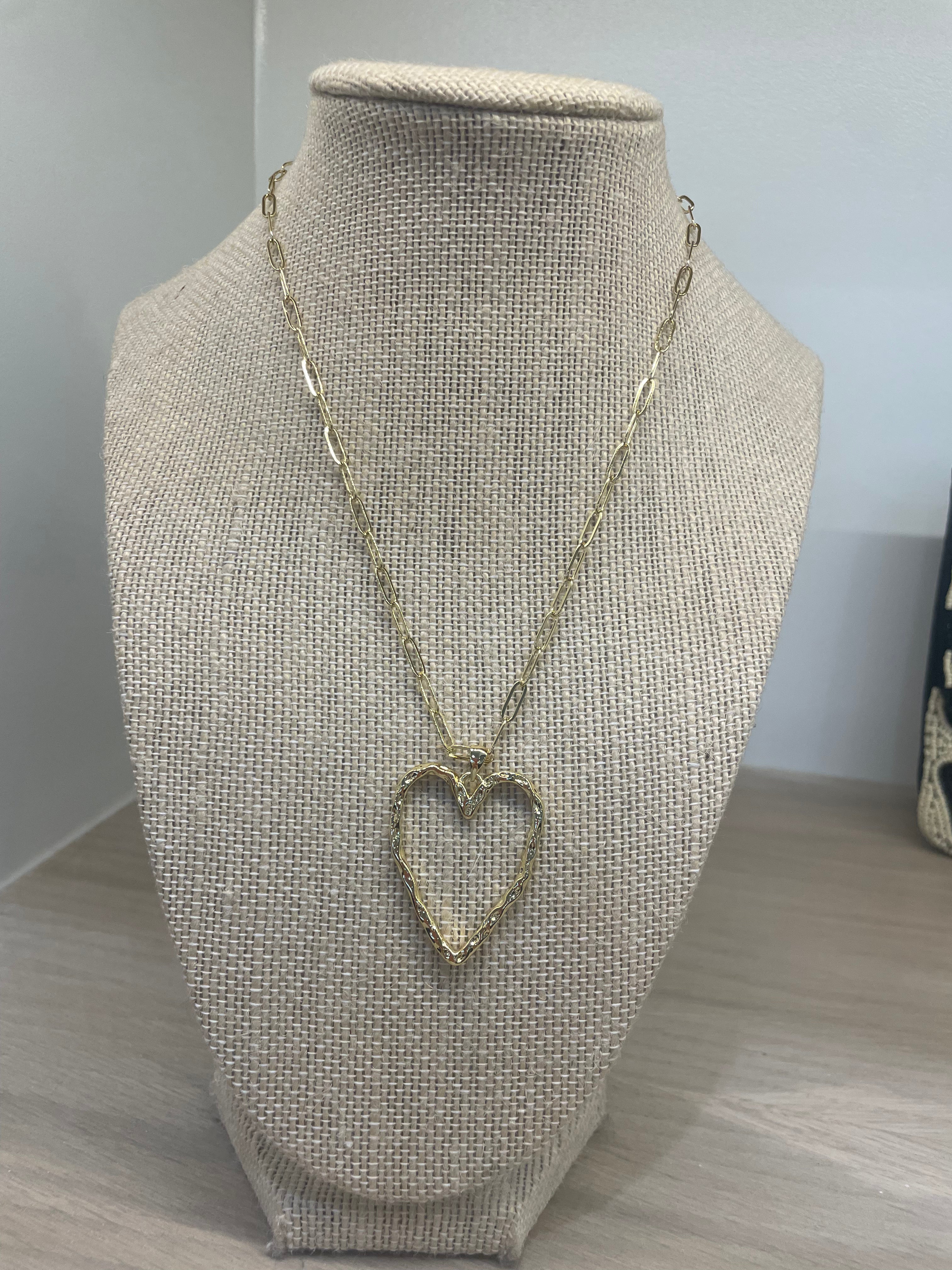 Hammered Heart Necklace on Paperclip Chain