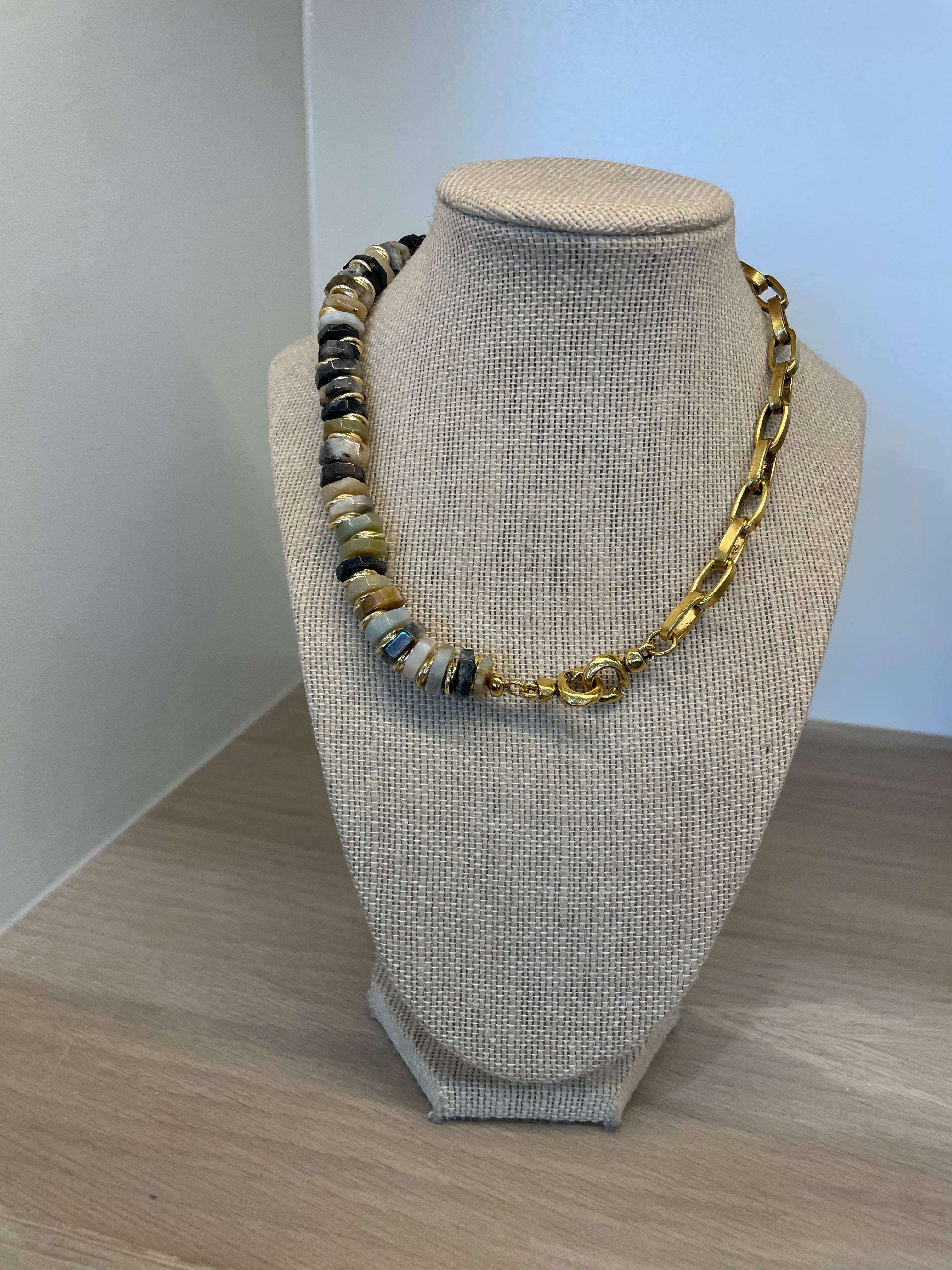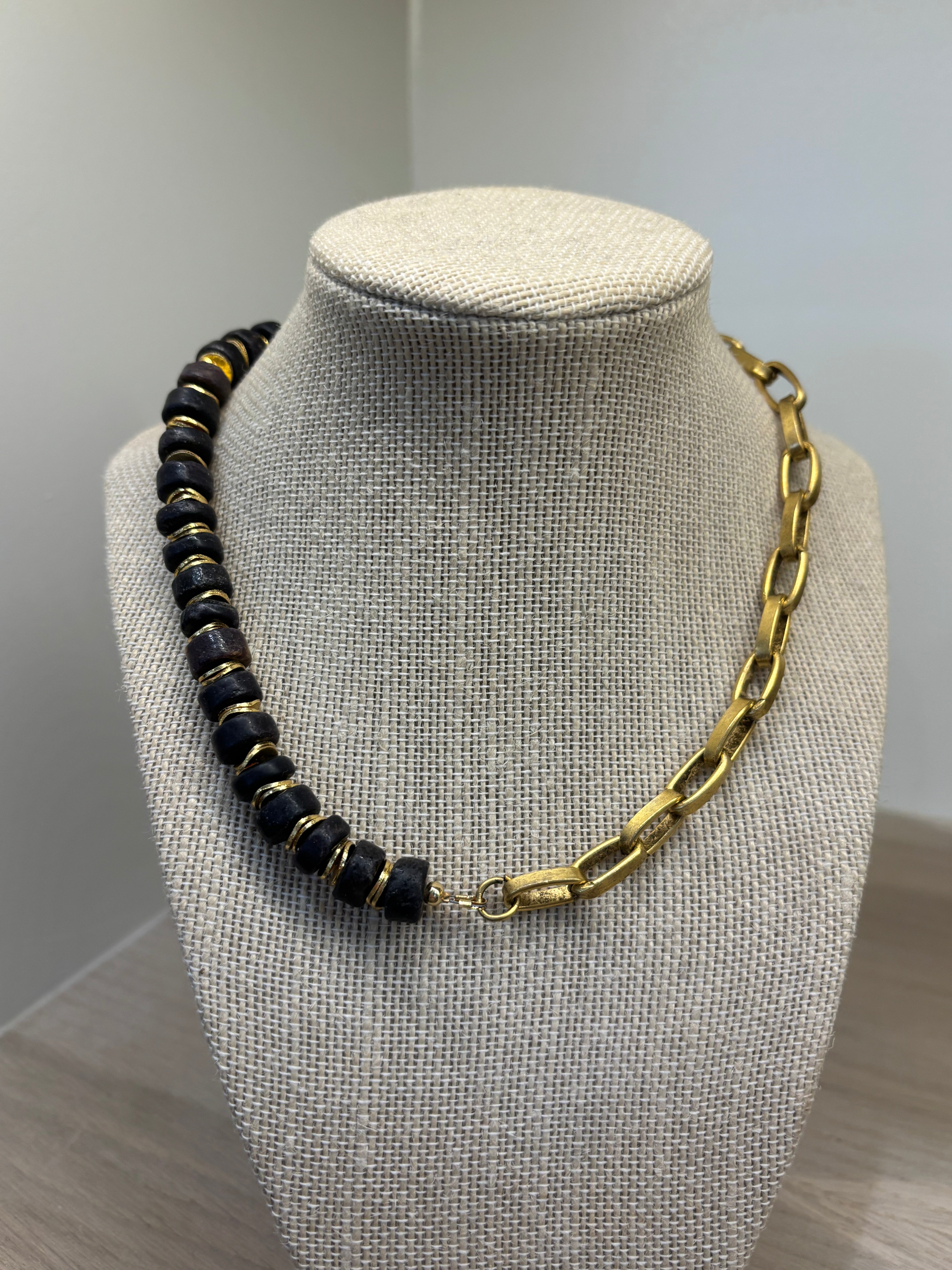 Matte Barrel Bead & Half Chain Necklace