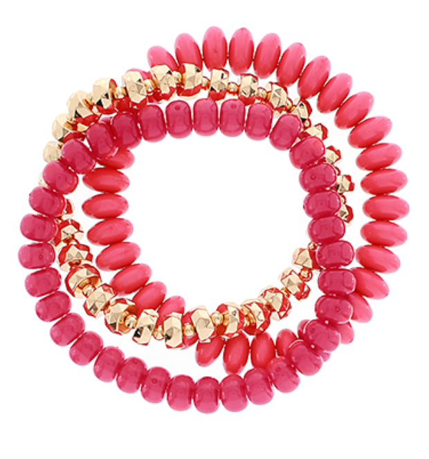 3 Row Multi Bead Bracelet | Fuschia