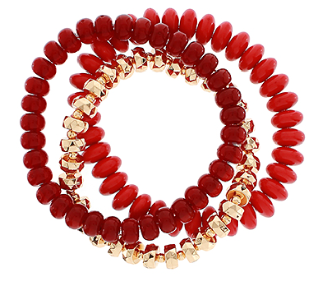 3 Row Multi Bead Bracelet | Red
