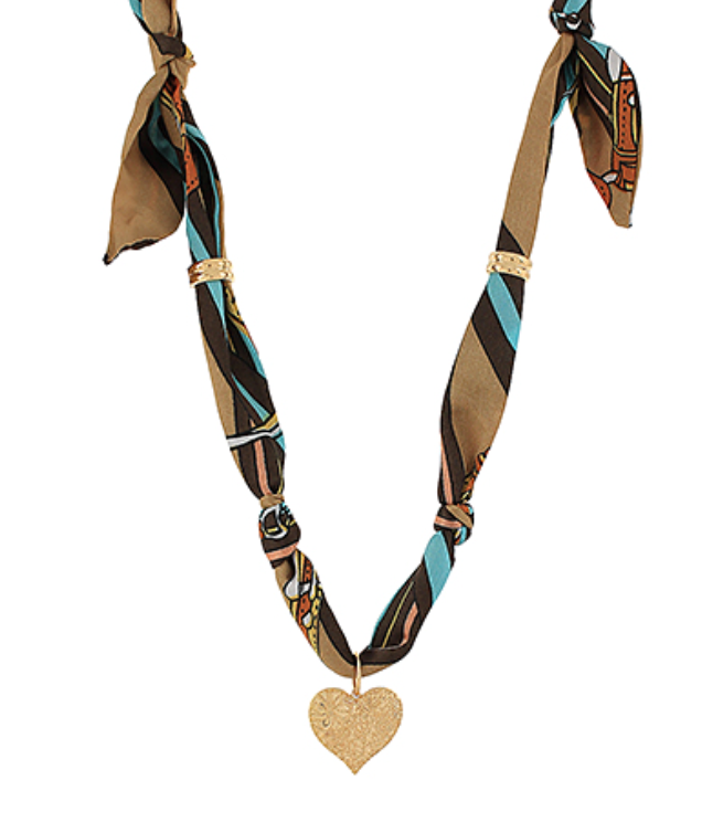 Textured Heart Charm Scarf Necklace | Brown