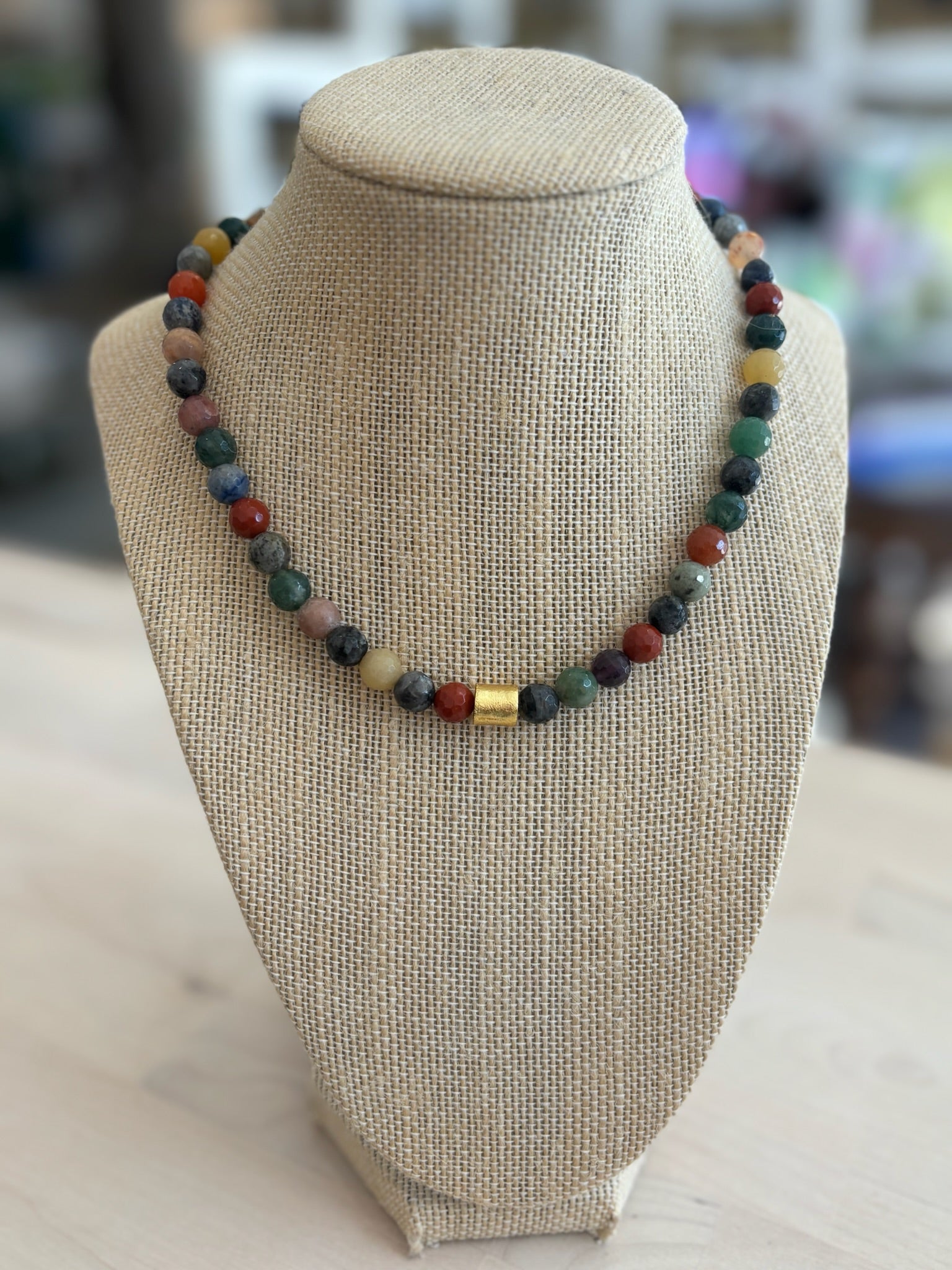 Multicolor Beaded Necklace with Center Gold Bead