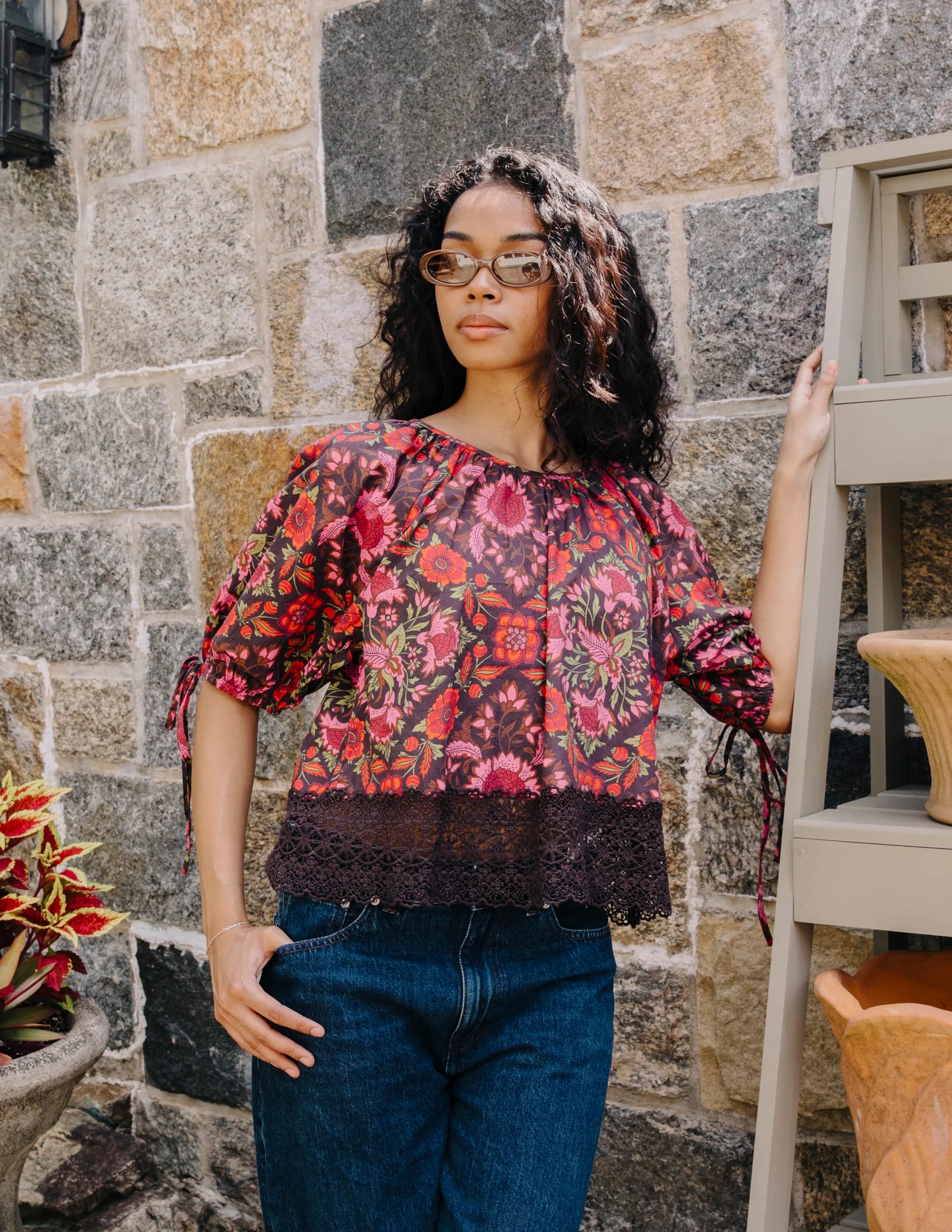 Long Sleeve Zuri Top | Wind Chime Plaid