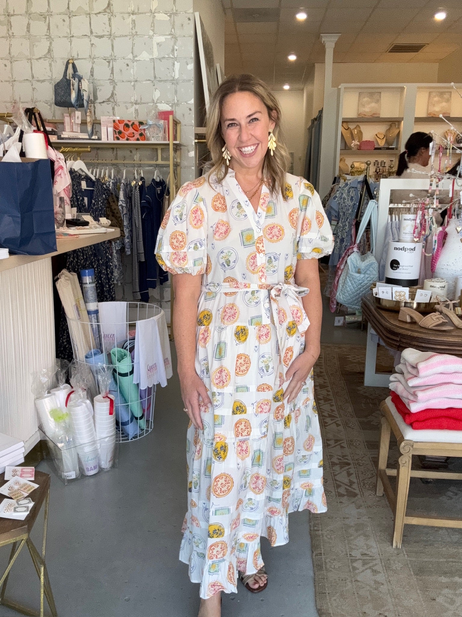 Brooklyn Button Detail Dress | Cream, Multi