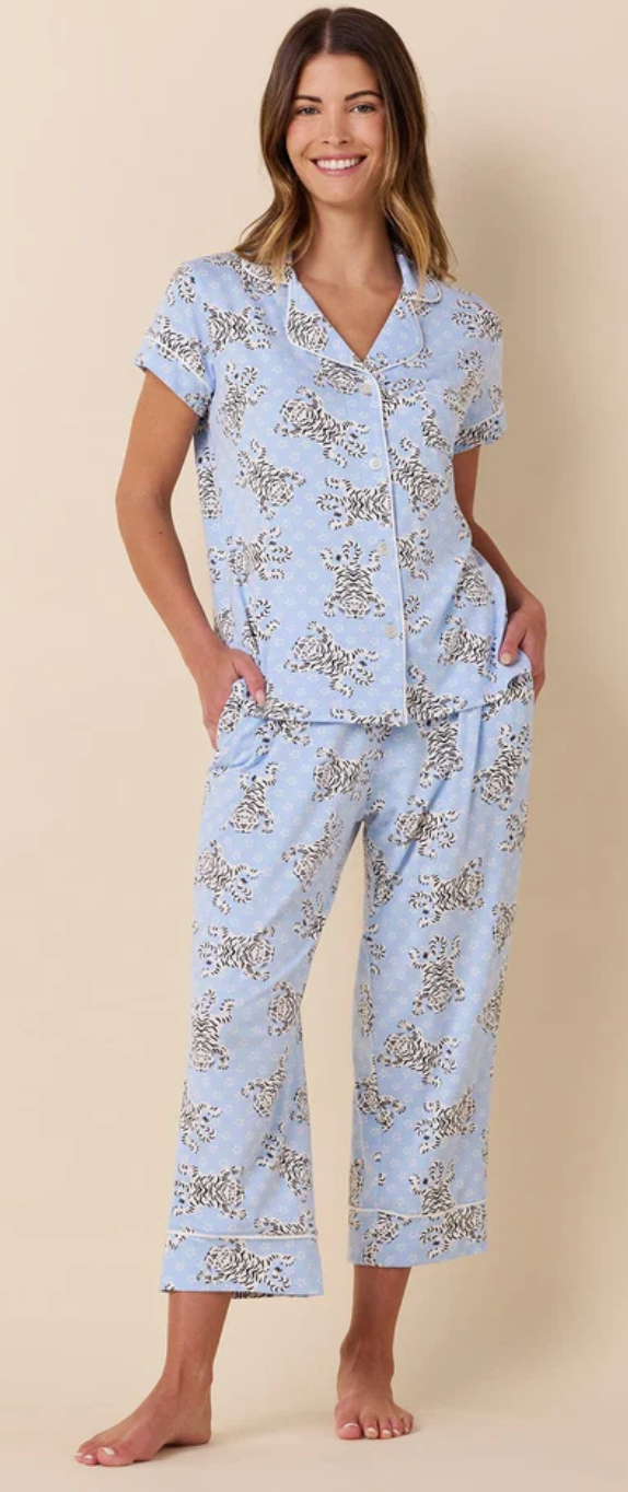 Stripe Pima Knit Capri Set | Heavenly Blue