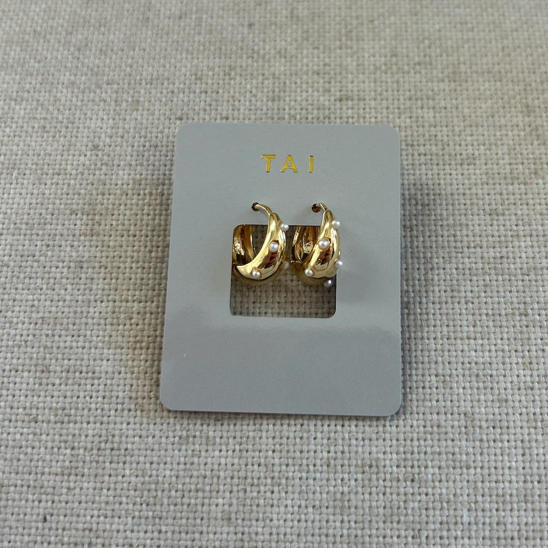 5 Row Pearl & CCB Ball Bracelet | Gold & Brown