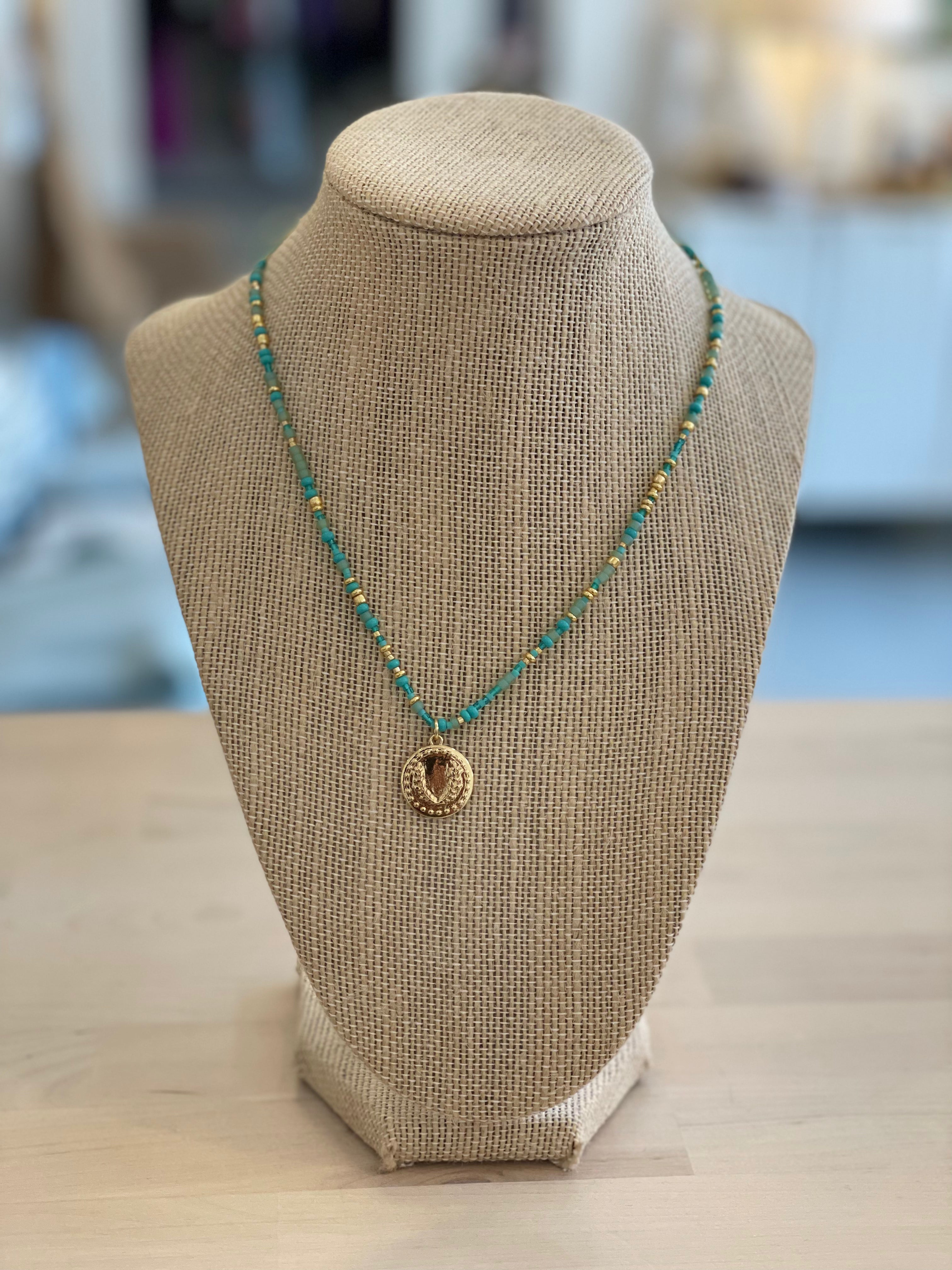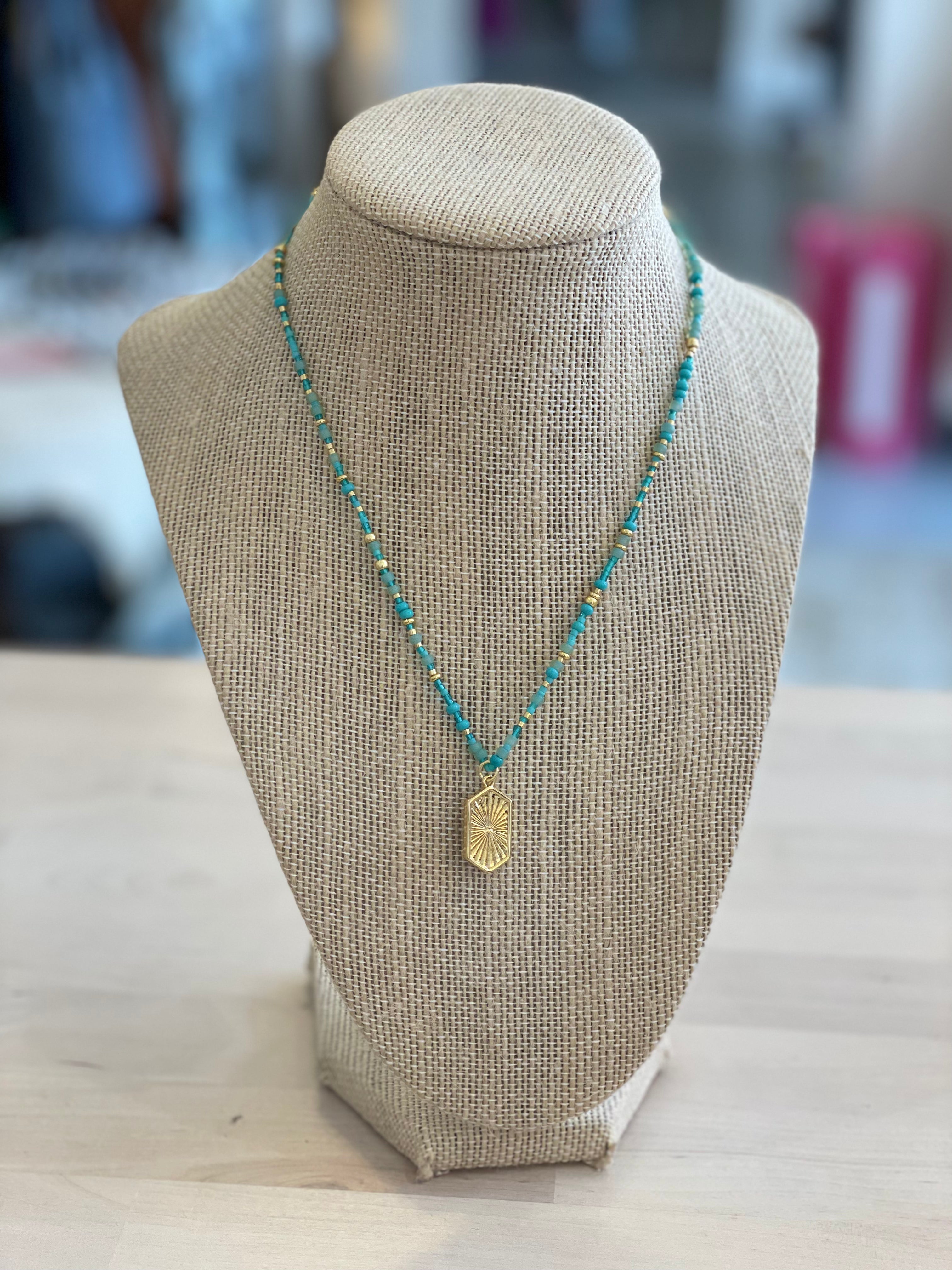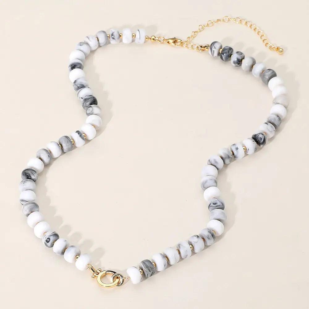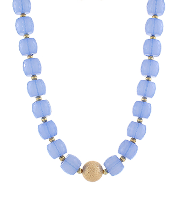 Metal Ball & Chunky Bead Necklace | Light Blue