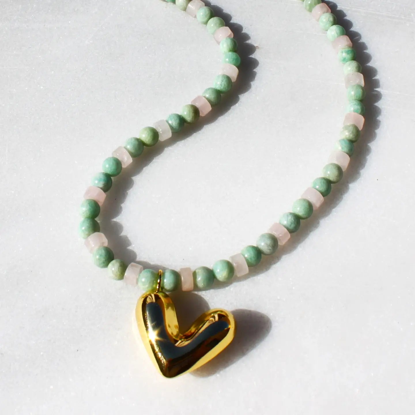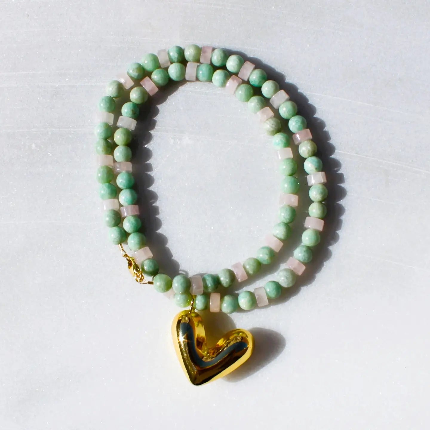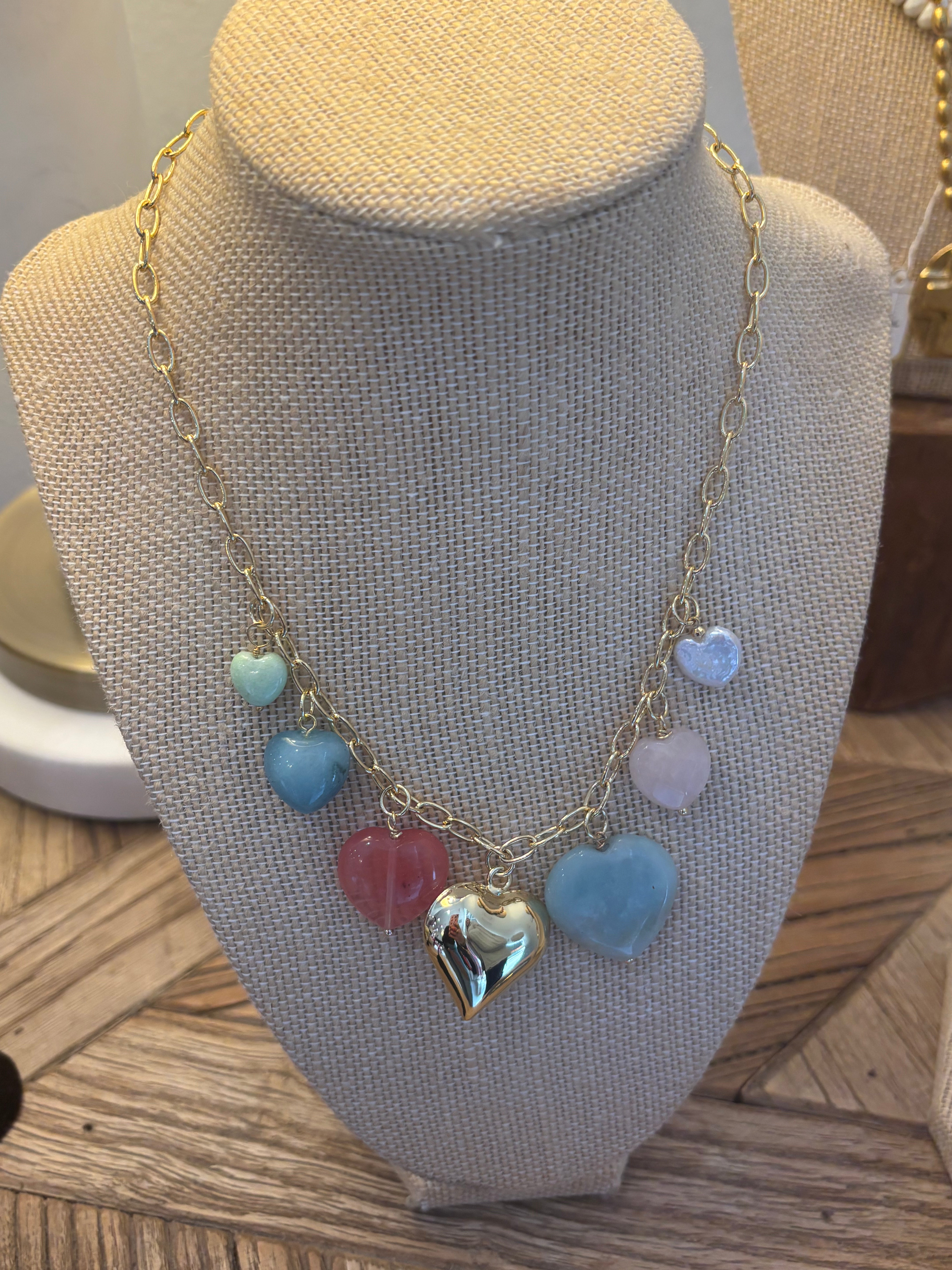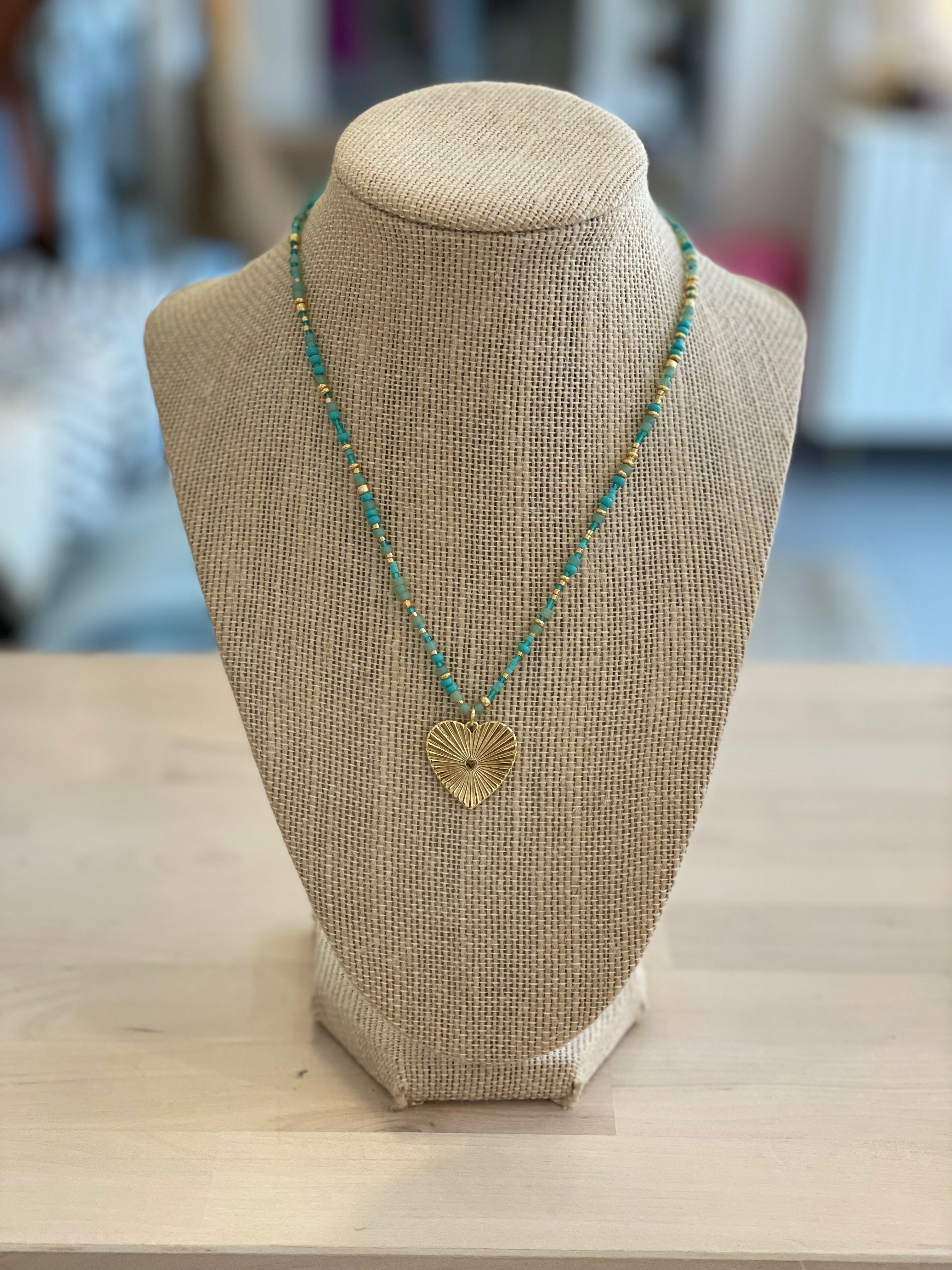 Metal Ball & Chunky Bead Necklace | Light Blue