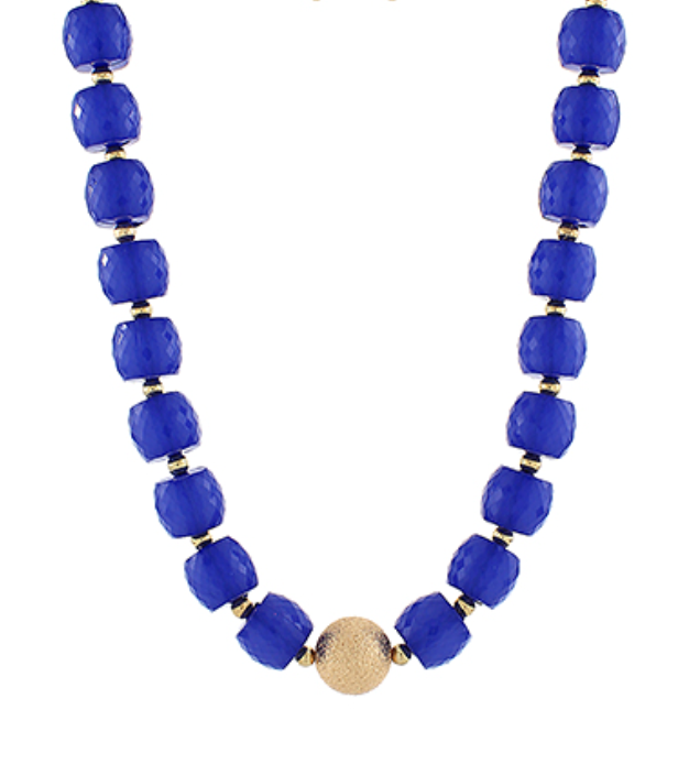 Metal Ball & Chunky Bead Necklace | Royal Blue