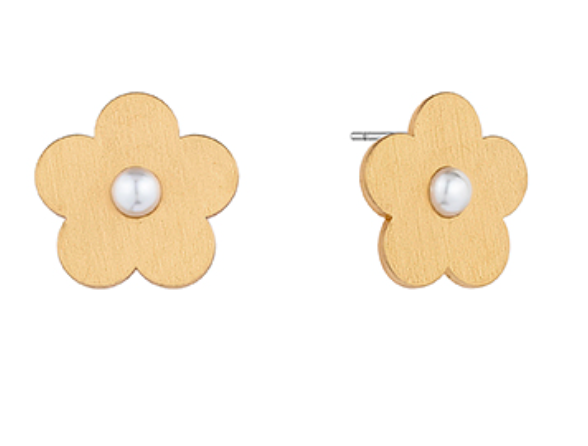 Bold Square Stone Textured Earrings | Siam/ Gold