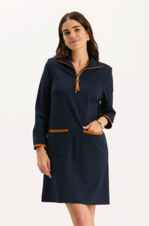 Helena Ponte Trimmed Dress | Navy