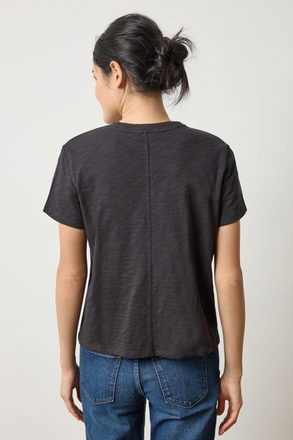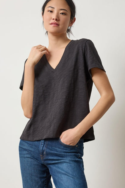 The Boyfriend V-neck in our cotton slub fabric has the perfect weight and slub texture. It is a relaxed take on our best-selling V-Neck. Designed for a more relaxed fit, it has slightly wider shoulders and is easier through the body for effortless fit. The wider crossover trim at the neckline adds a modern touch, making this a style you'll want in every color.